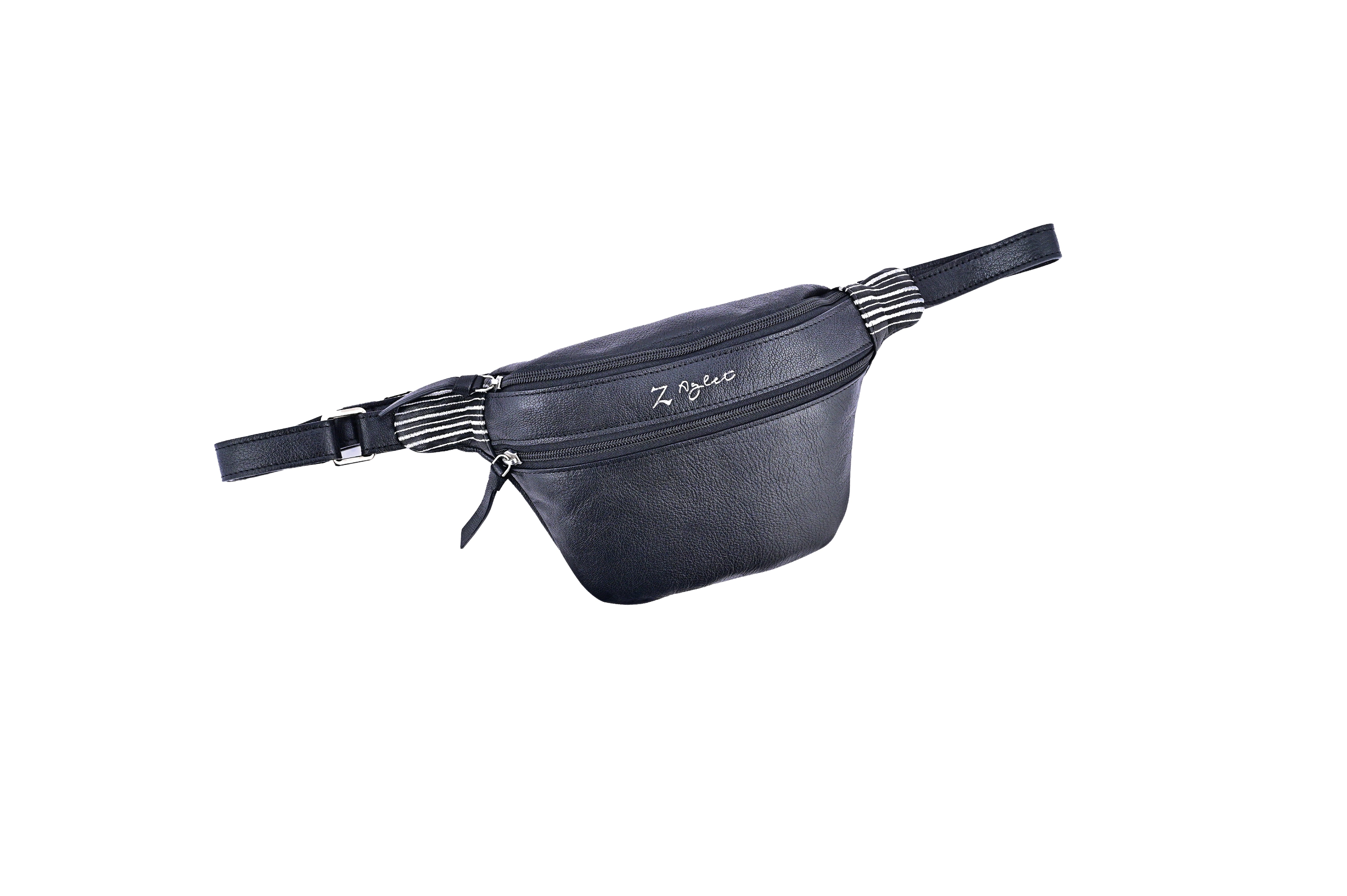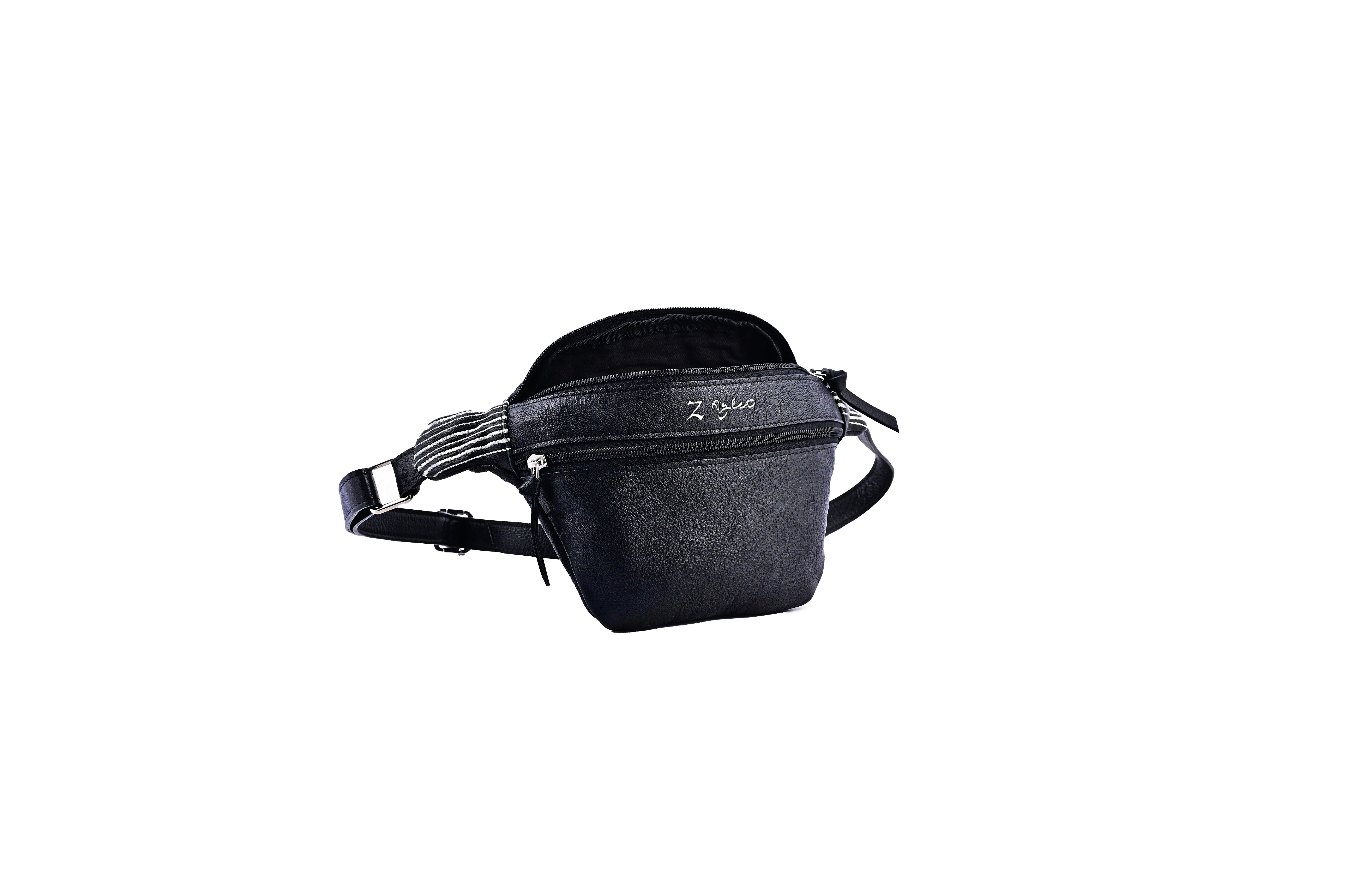 Built for the movers, makers, and mid-dance-break shakers. Sleek black leather, a sporty striped detail, and hands-free freedom — this belt bag keeps your essentials close and your style closer. Compact, tough, and always up for an adventure.
