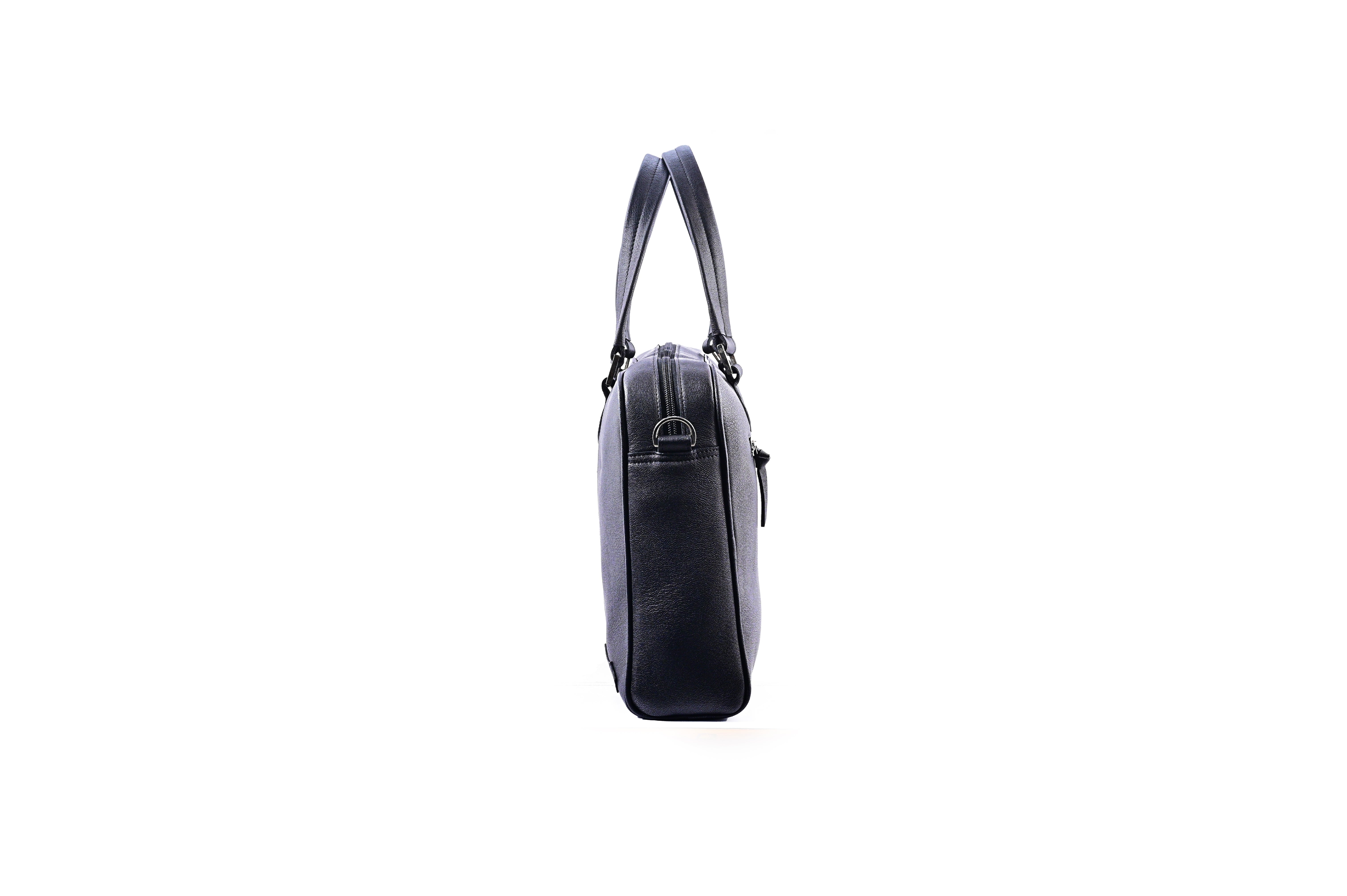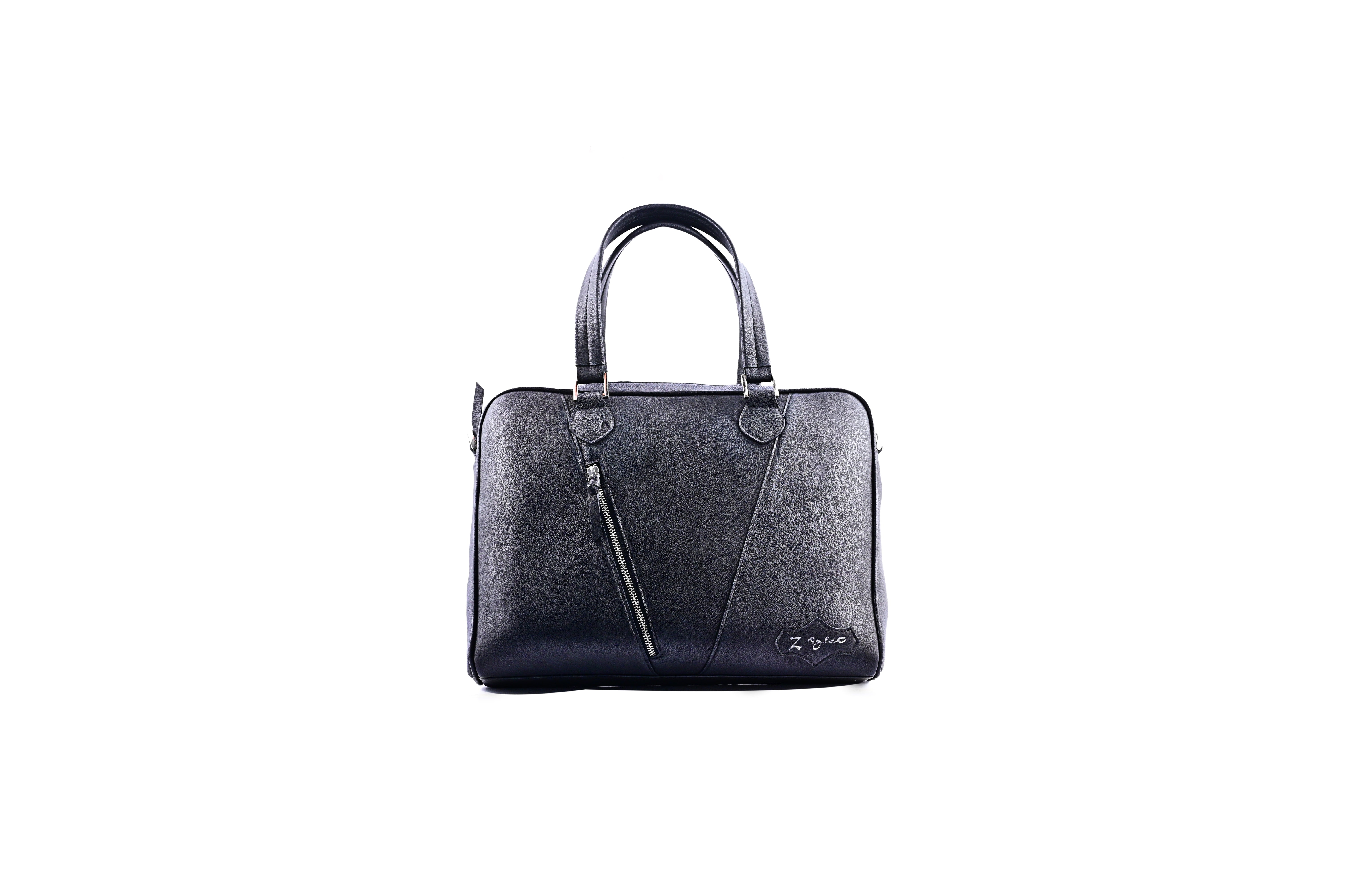 Boardroom sleek with an edge of rebellion. Matte black leather, clean lines, and a sharp asymmetric zip give this work essential a quiet authority. Built to carry your world without shouting for attention — professional on the outside, unmistakably Z Aglet on the inside.