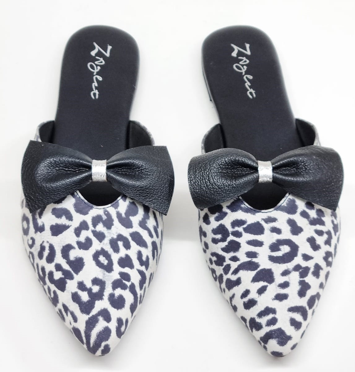 Crafted in striking black-and-white leopard print with a smooth, sculpted bow. The pointed silhouette exudes quiet sensuality — elegant by instinct, bold by nature. Effortless, confident, and impossible to ignore.