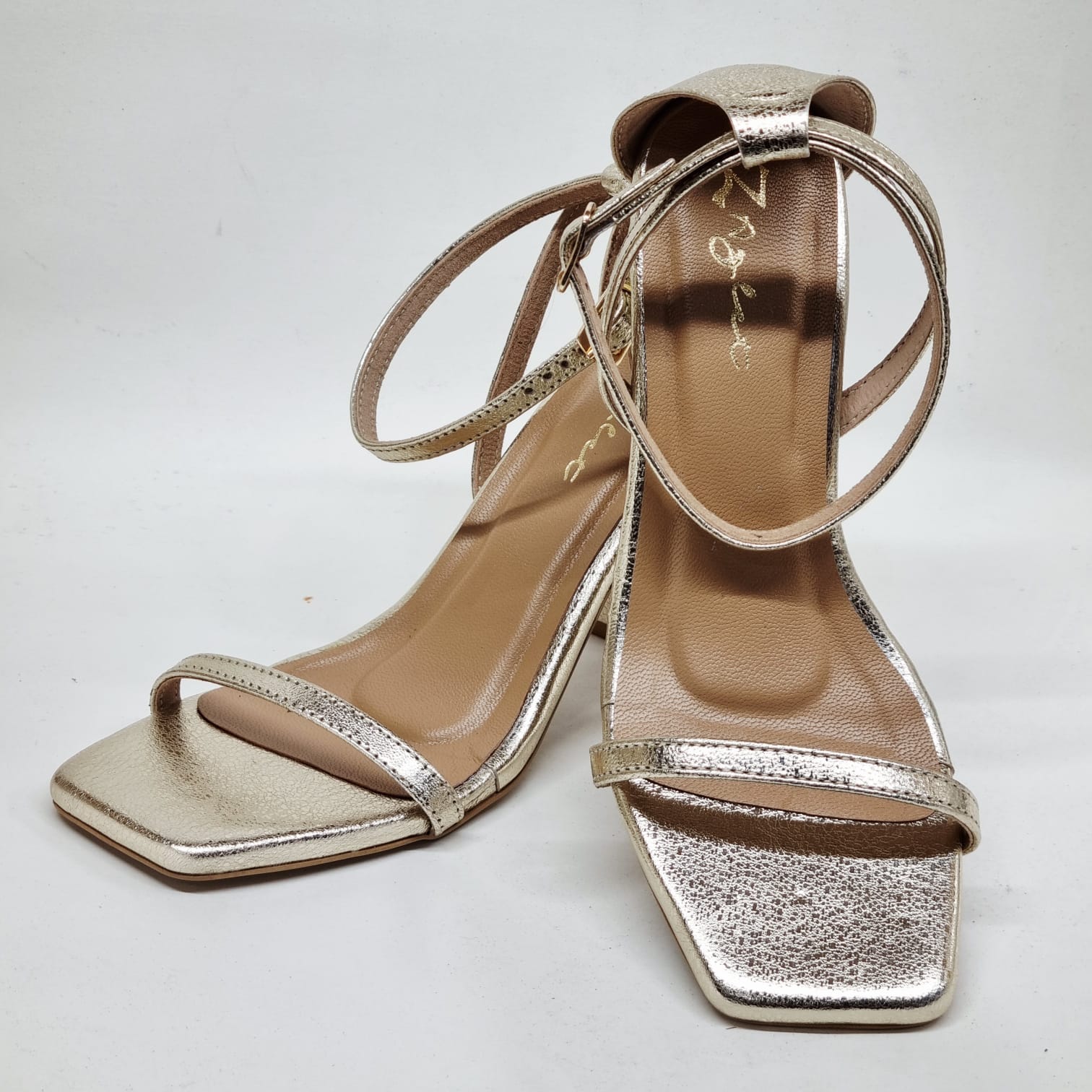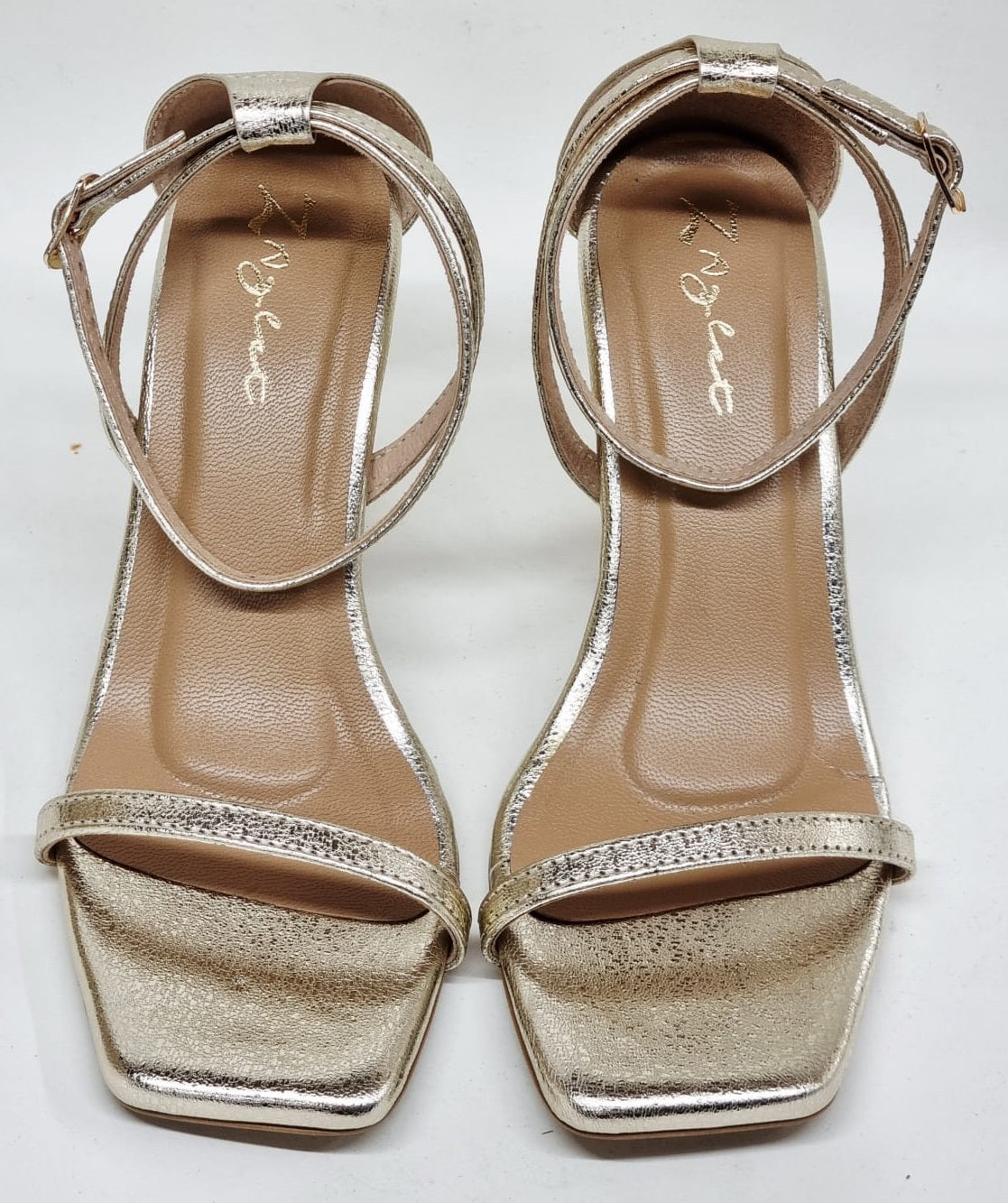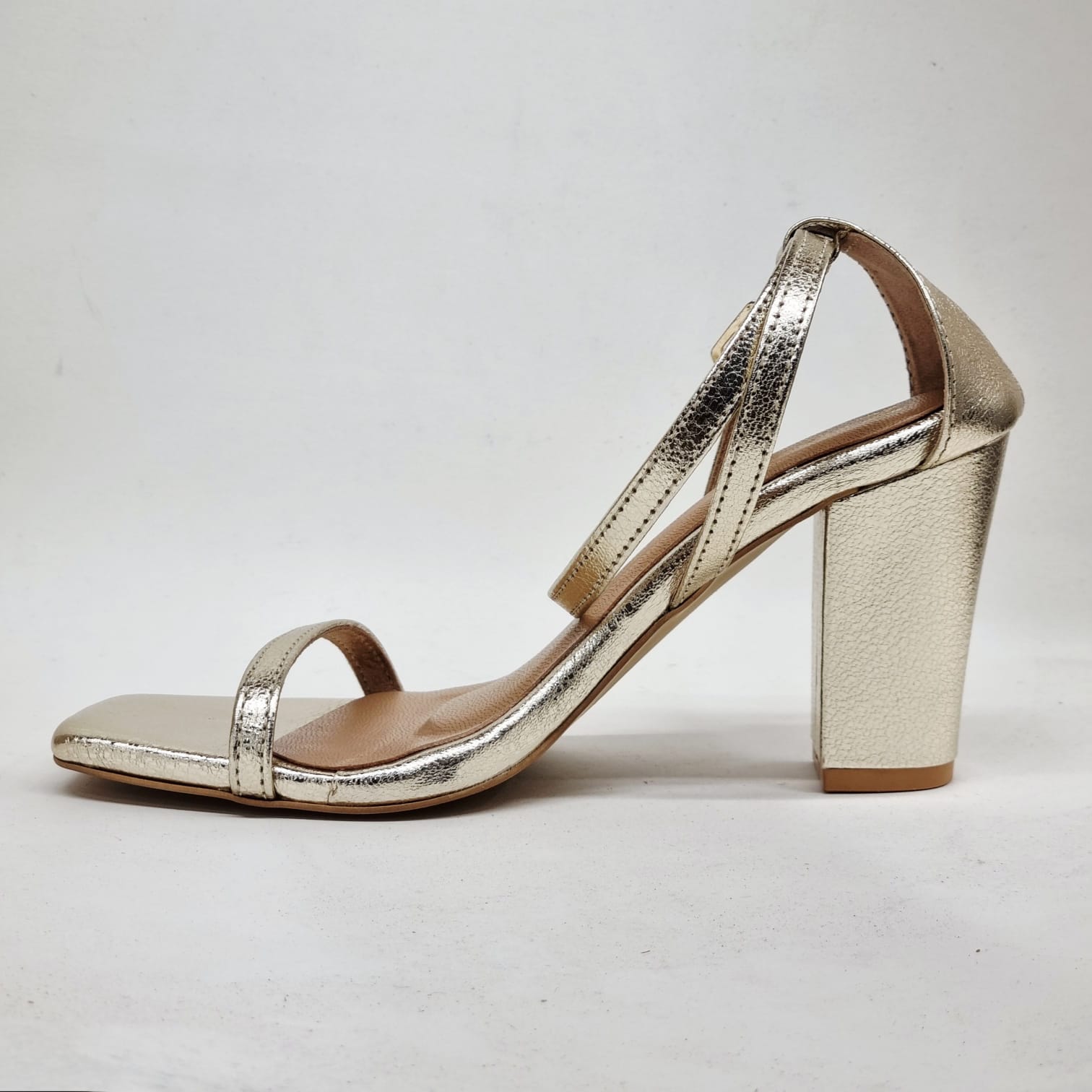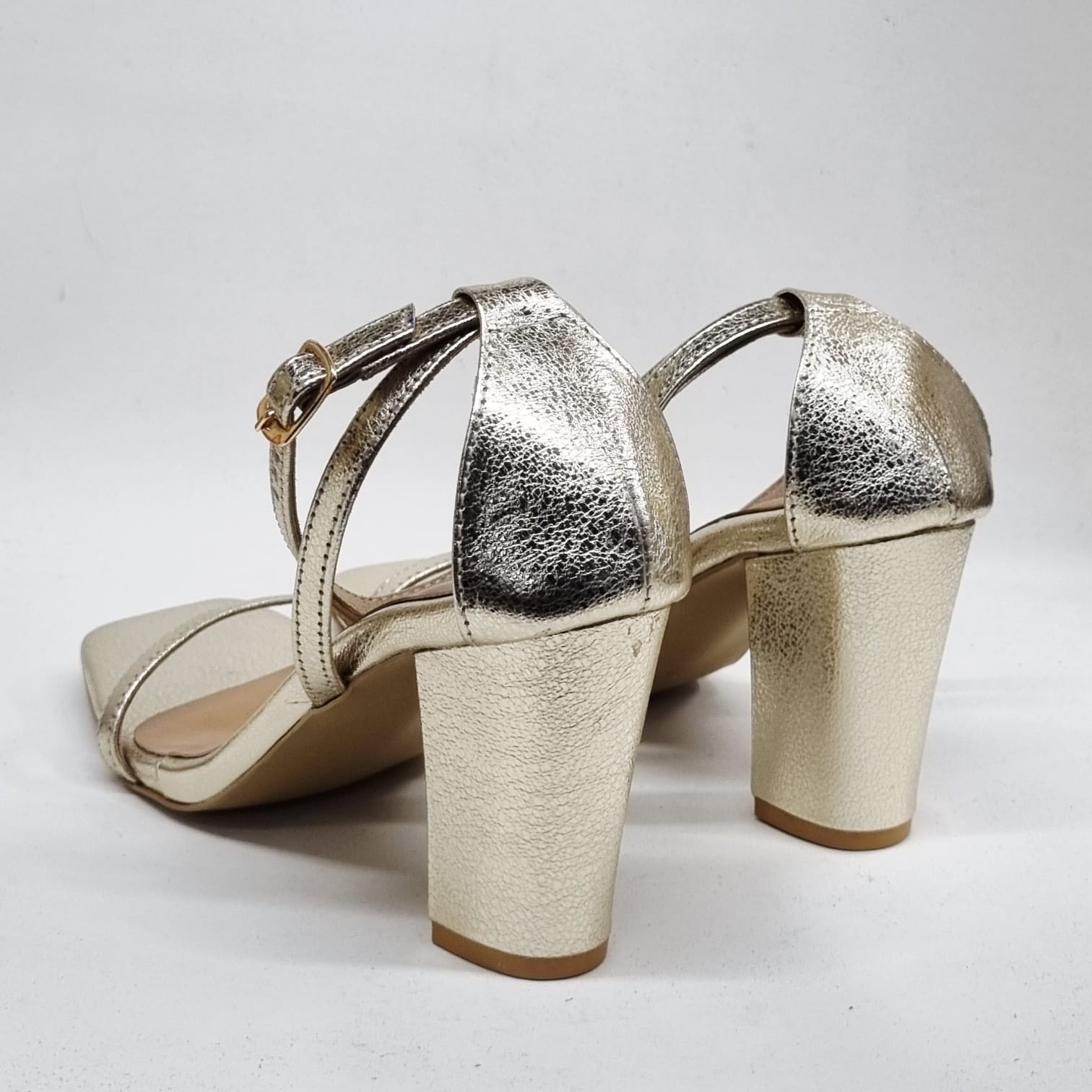Golden. Glowing. Glorious. Metallic leather that catches light like liquid heat. The sculpted block heel elongates, empowers, and never tries too hard. It’s not just a heel — it’s an entrance.