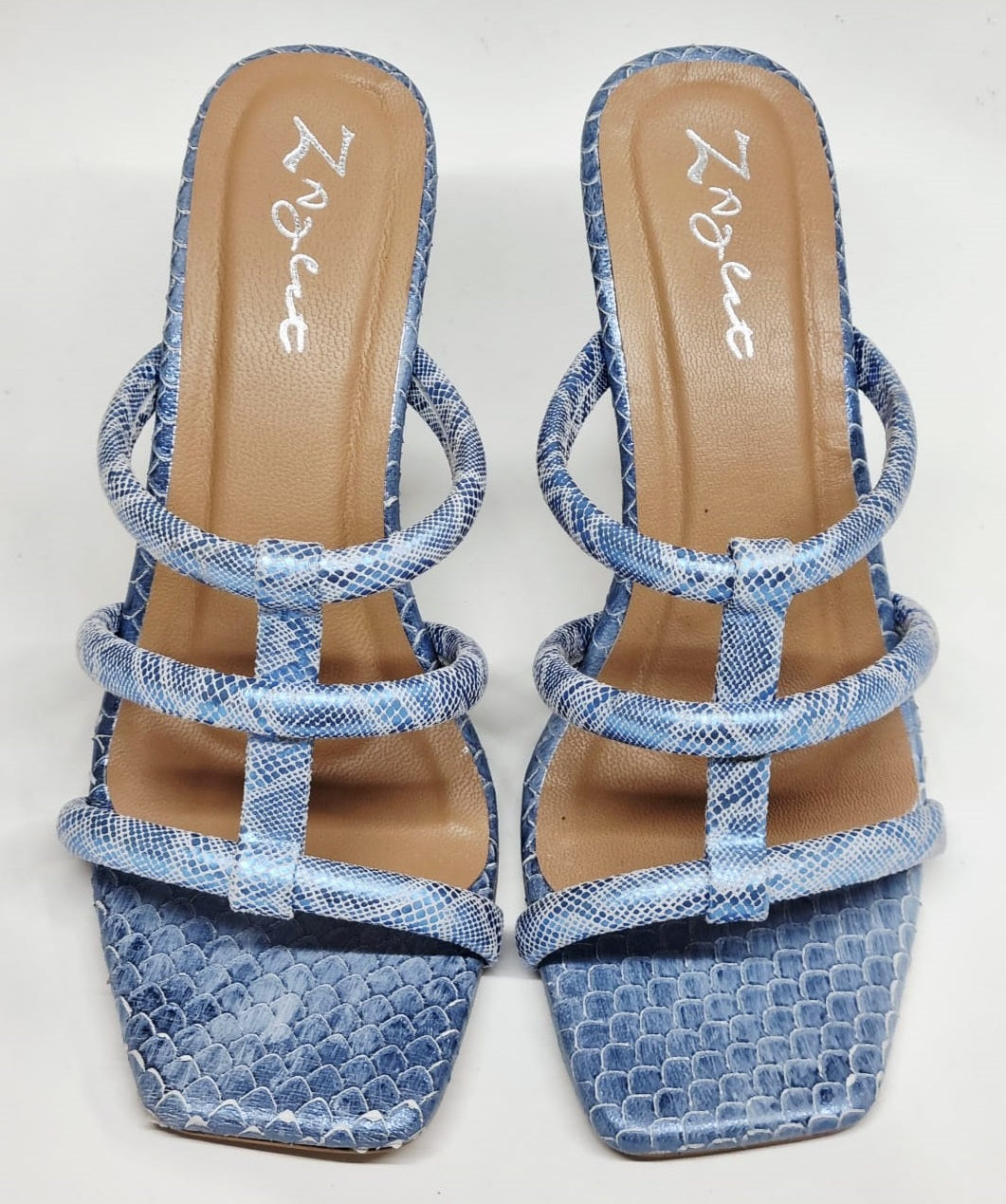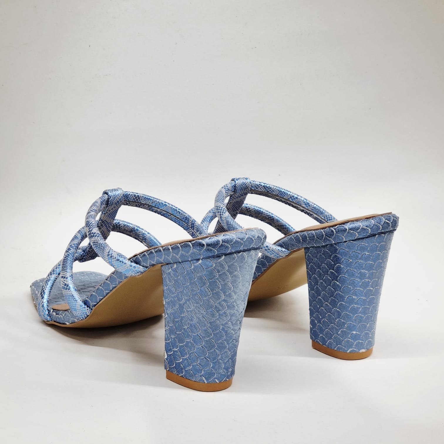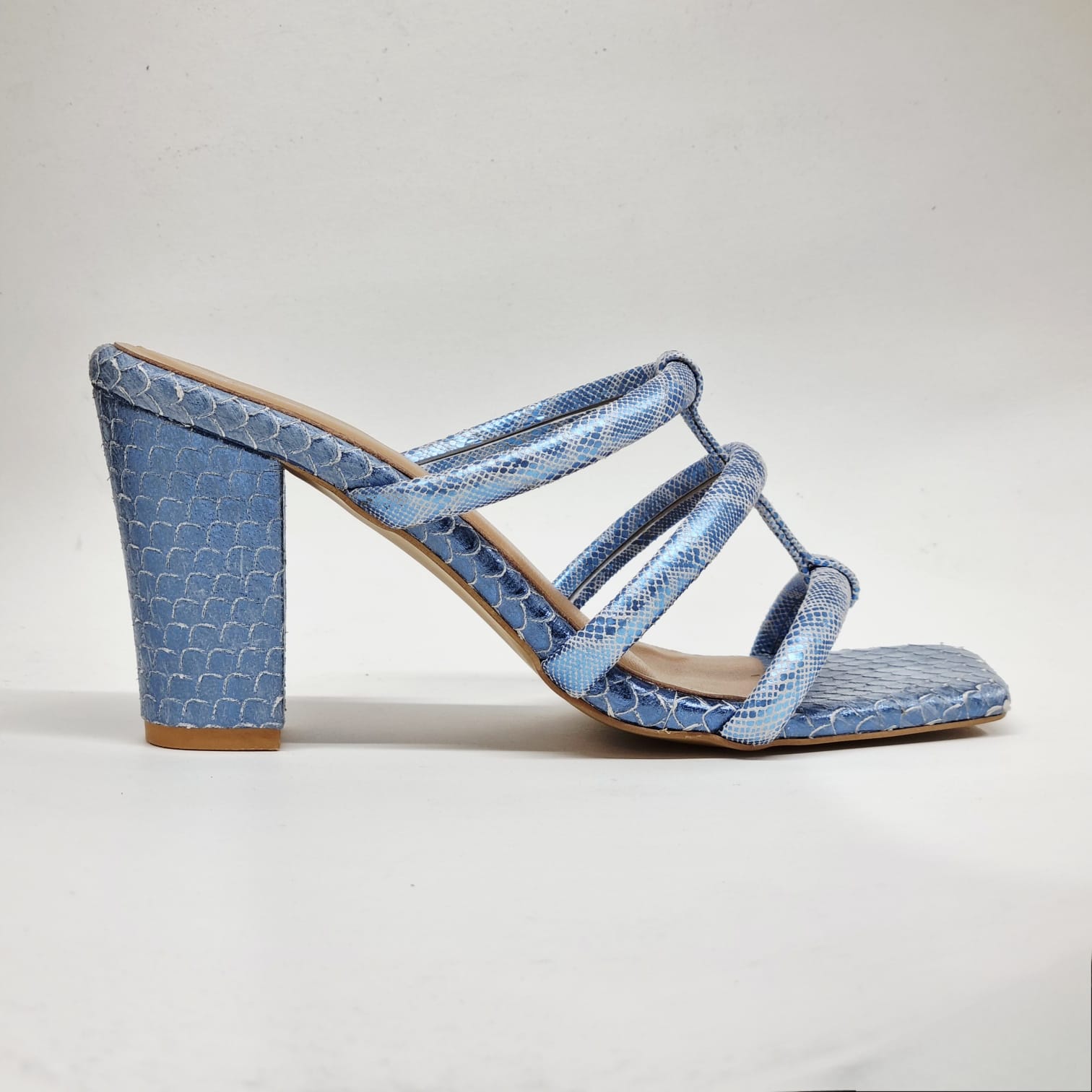 Frosted hue, Flawless stance. Handcrafted in icy blue embossed leather with a gentle pearlescent sheen. The strappy silhouette and high block heel give it a sensual curve — elegant by instinct, daring by design. Subtle, sculpted, and impossible to forget.
