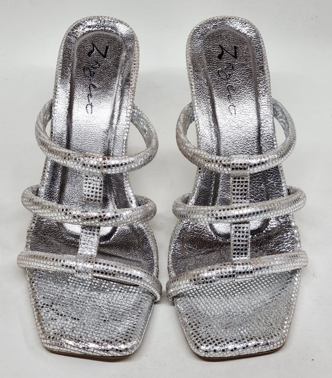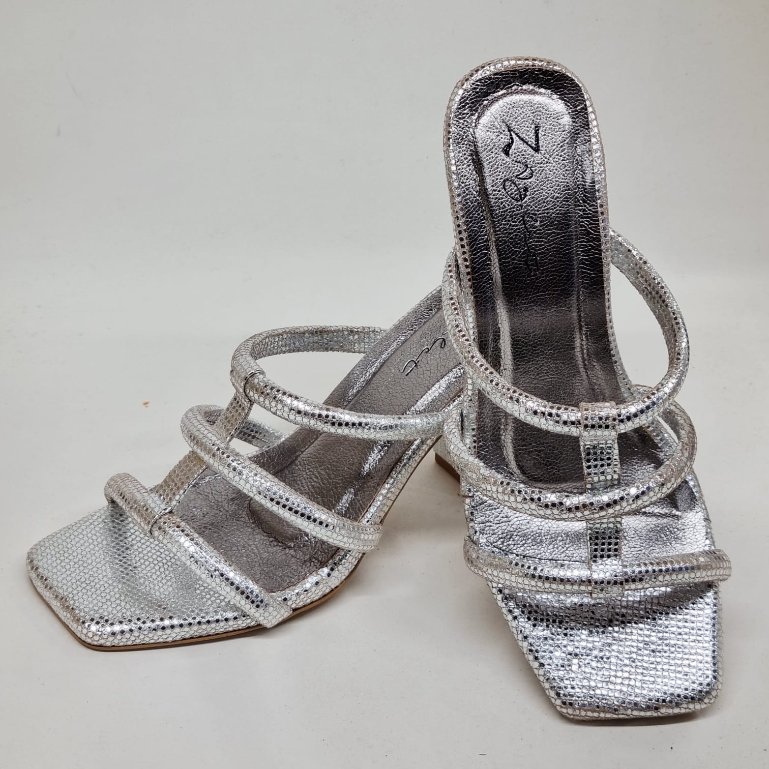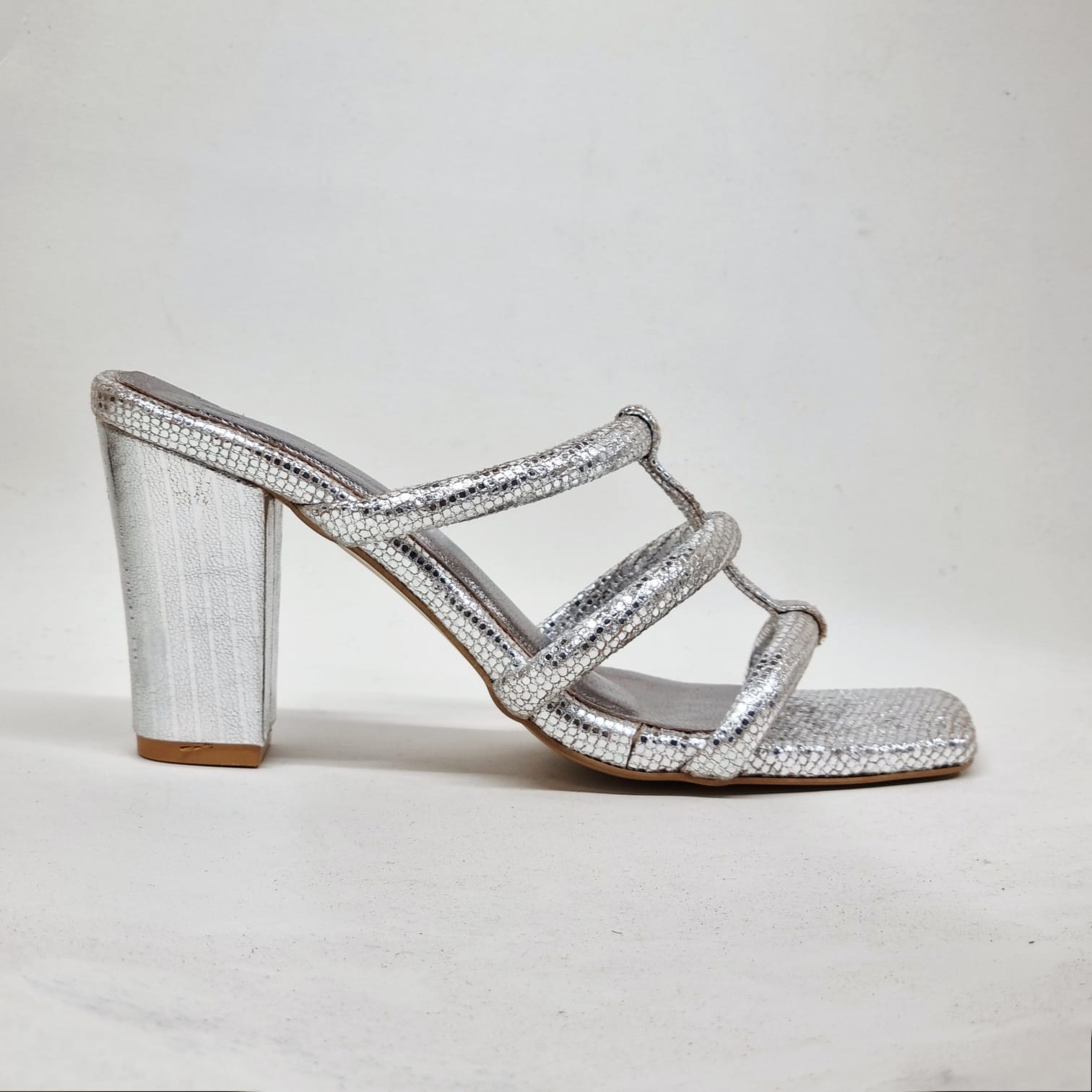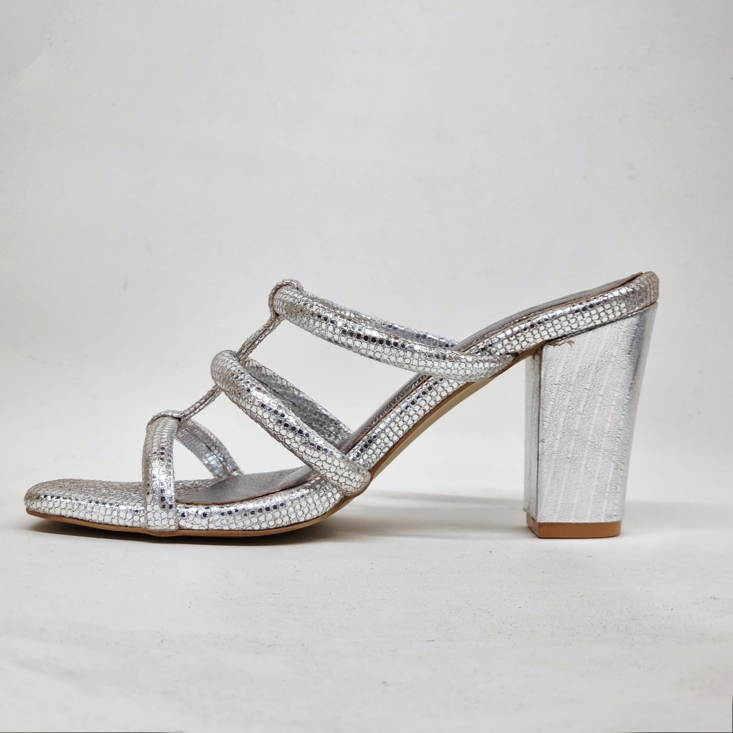 Pure metallic leather in a molten steel finish, curved over a perfectly balanced heel. It catches light like liquid, made for women who command both boardrooms and ballrooms. Quietly daring, undeniably rare.