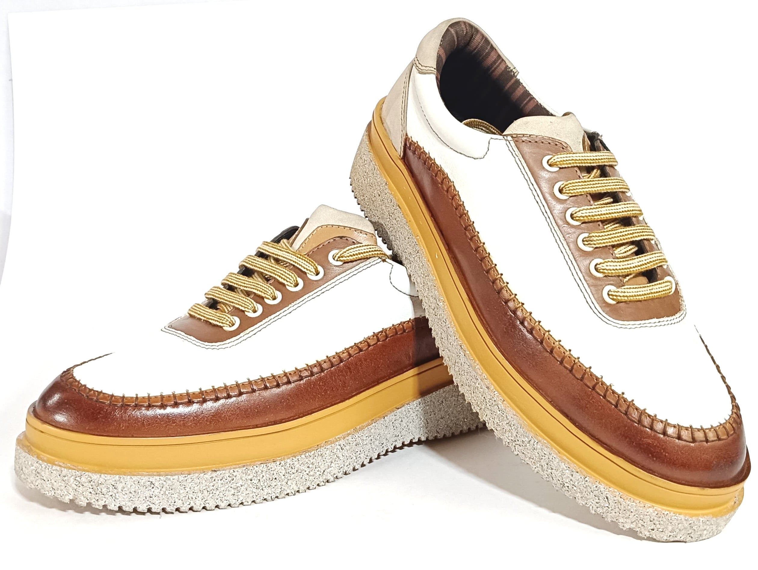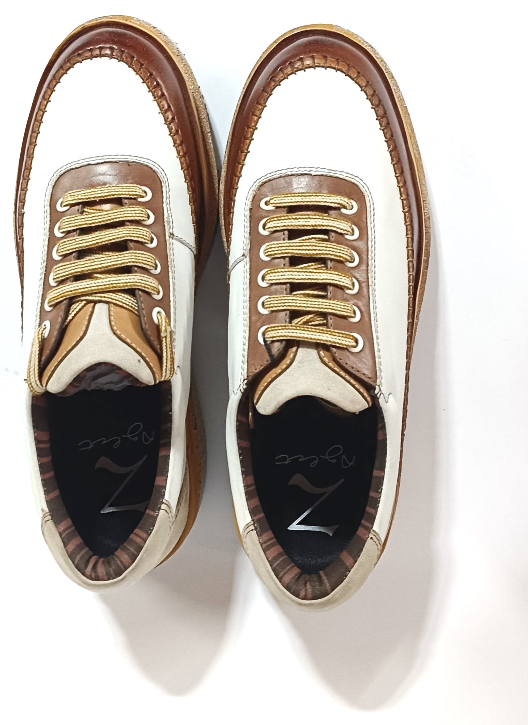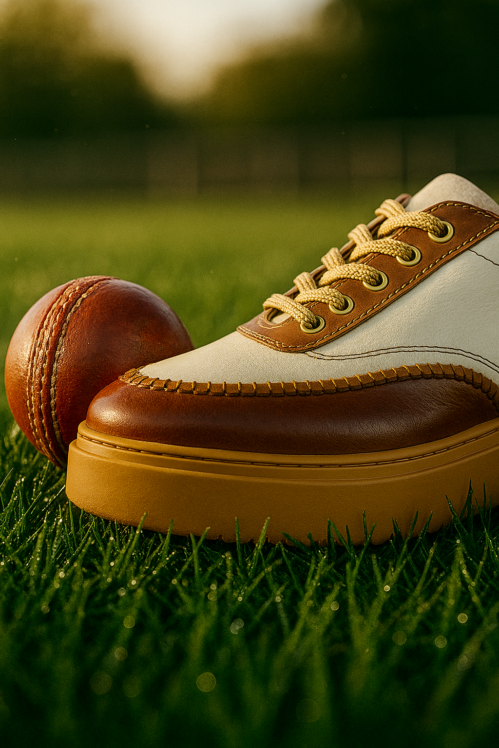 Whites that whisper nostalgia, stitches that echo the wicket. Smooth canvas meets refined leather trims — crisp, clean, and effortlessly at home from the crease to the café.