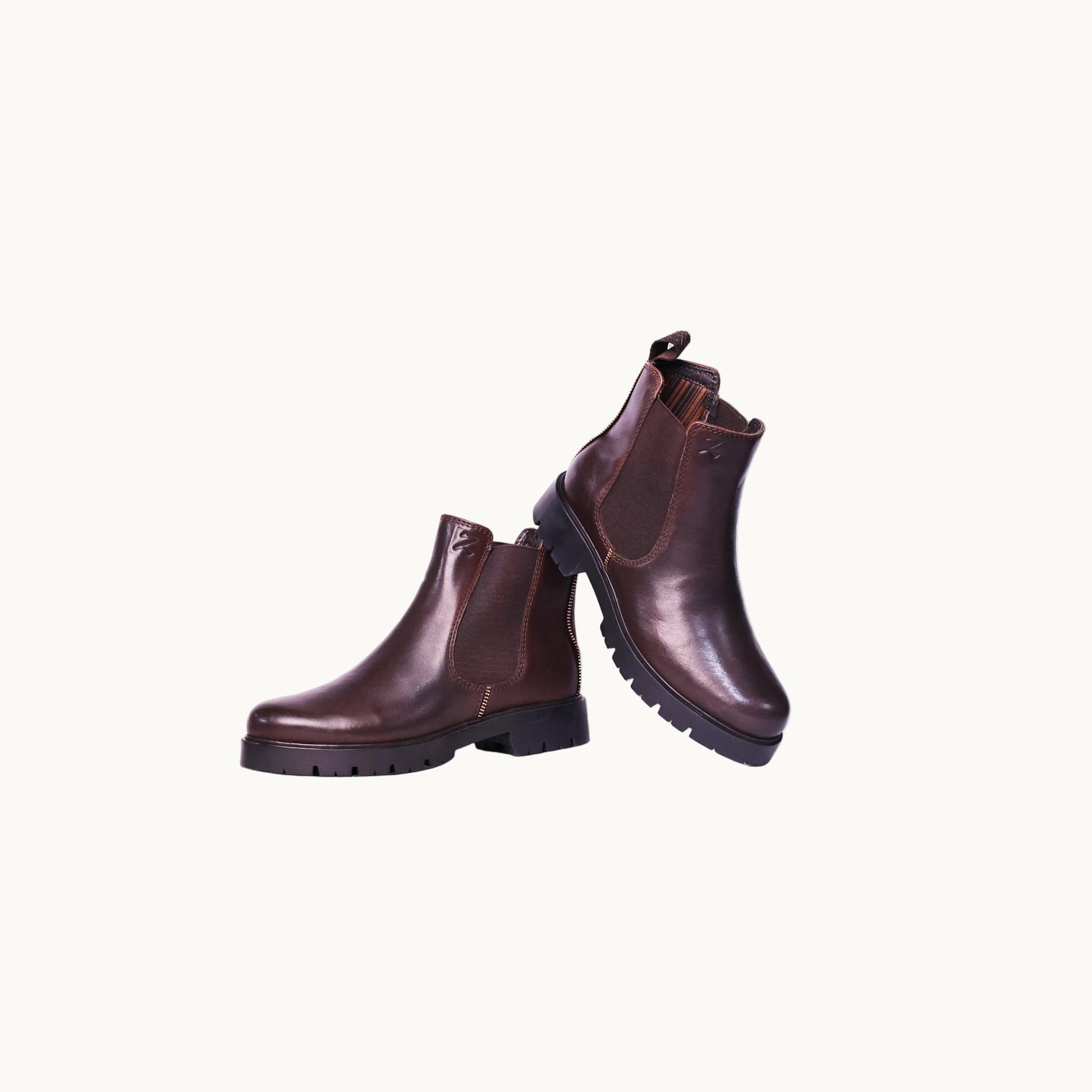Warm café brown leather, zipped to perfection. Boots that pour rich elegance with a bold edge — morning latte chic meets midnight stride.